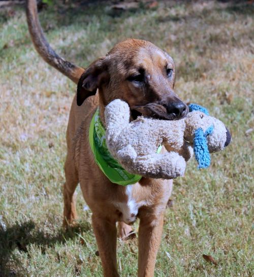 Razor is thirteen-months old as of mid-Jan ’20 and about 60 lbs. He loves children, is good with most dogs but best to meet at the Shelter to make sure. He loves to play and really loves his stuffed toys so we will make sure to send him home with one. Razor lives to please his person and is crate-trained.