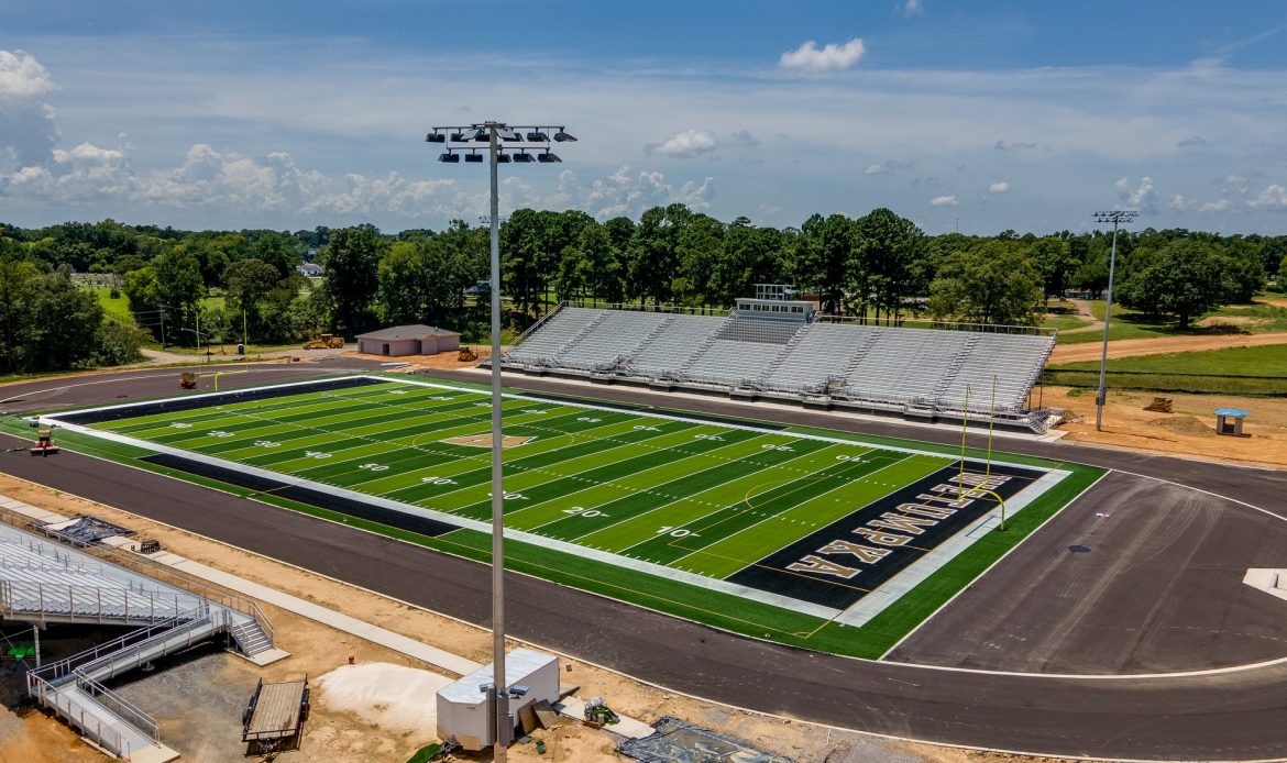 The $6 million stadium project still has a few more weeks before completion but should be finished before the Indians’ 2020 home opener with Tallassee on Aug. 28. The stadium, located on Alabama Highway 14, will seat 1,500 for visiting fans and approximately 4,000 in the home grandstands, not counting a two-story facility on site that will serve as a gathering spot for the town’s clubs and organizations.