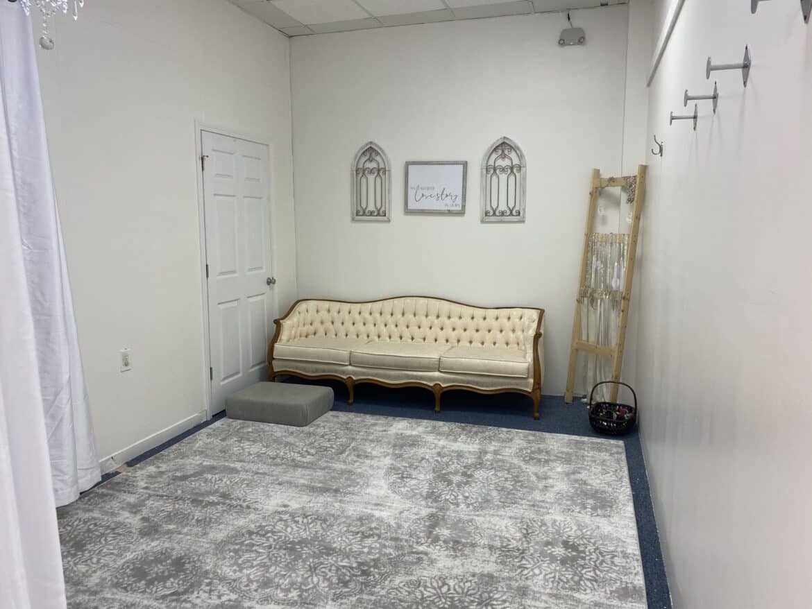 While out looking and passing through Millbrook often on her way home her husband suggested she look at a property. What was once Gateway Ministries in Millbrook, located in the Shopping Center next to Jones Drugs on Highway 14, is now occupied by The Bridal Boutique and Tux Shoppe.