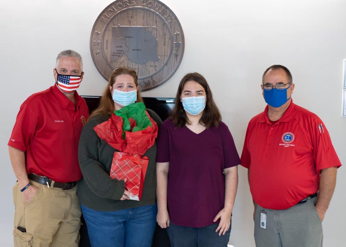 Chaplain John Gallops with the 1:1 Foundation, along with the Elmore County Firefighters Association, and the Elmore County EMA recently delivered over $2,600 in gift cards and donations to the family of Amy Collier after an early morning fire on Dec 11 off Jug Factory road.