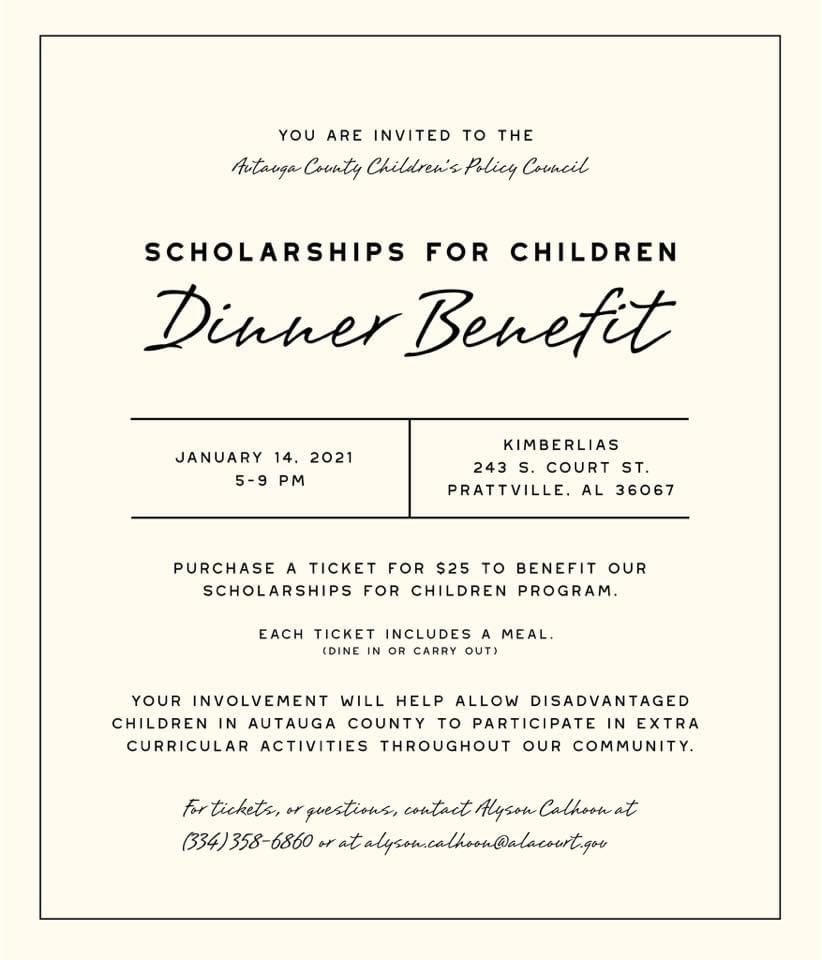 This is a benefit for the Autauga County Children’s Policy Council, and monies raised will fund scholarships for area children.