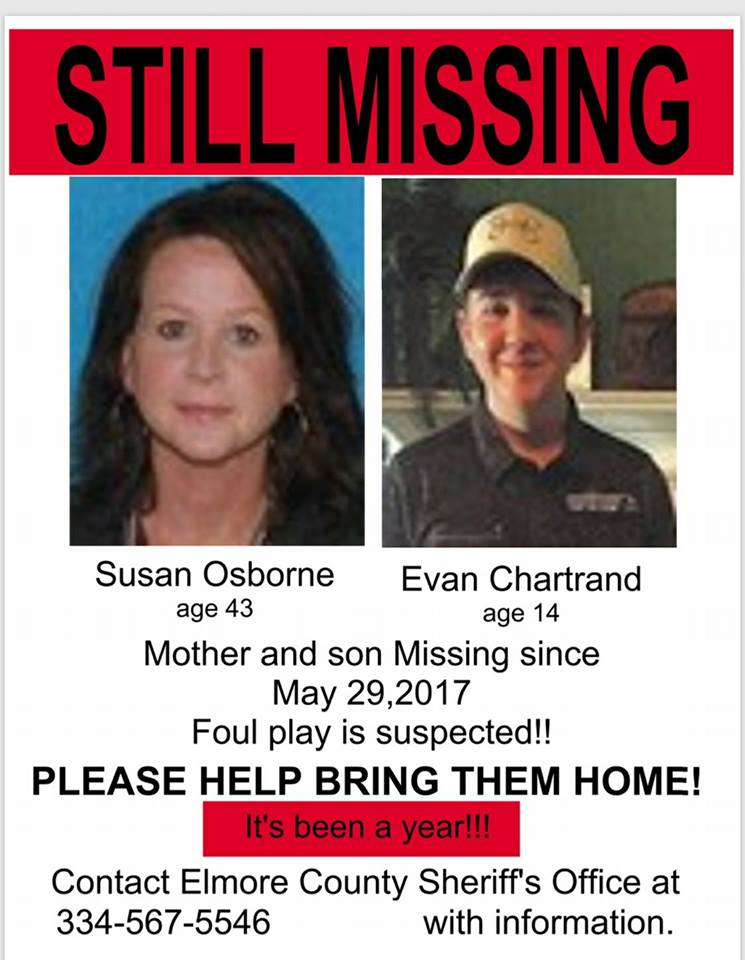 A new Podcast released in December includes discussion of the still unsolved case of Susan Osborn and her son Evan Chartrand. The two were last seen over Memorial Day Weekend in 2017 and lived on Waterview Lane near Hwy. 111 in Wetumpka, near the Holtville community.