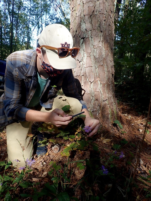 Yawn, an undergraduate student assistant in conservation and botany studies at Auburn University, was looking for the rare oak when he first spotted the asters through what he calls “drive-by botany.”