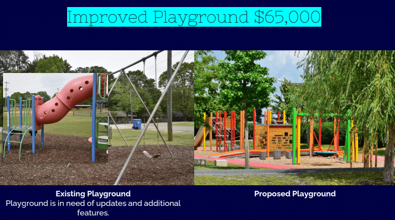 “The proposed new park would use materials that would require less upkeep and provide a fresh, modern appeal,” Cook said. “This new playground would provide playing platforms for children of all abilities, which we currently do not have.”