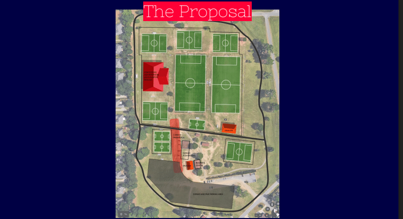 As part of the proposal, the city would look to add four new soccer fields, add concessions, upgrade the lighting, add fencing around the fields, renovations to the community center, improving and expanding the parking track and adding a new bathroom facility in the area where field five currently exists. Draining issues would also be addressed, and it’s proposed that the current gravel/dirt parking area would be paved and complemented with improved lighting.