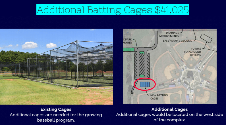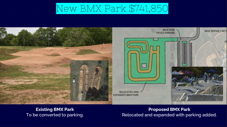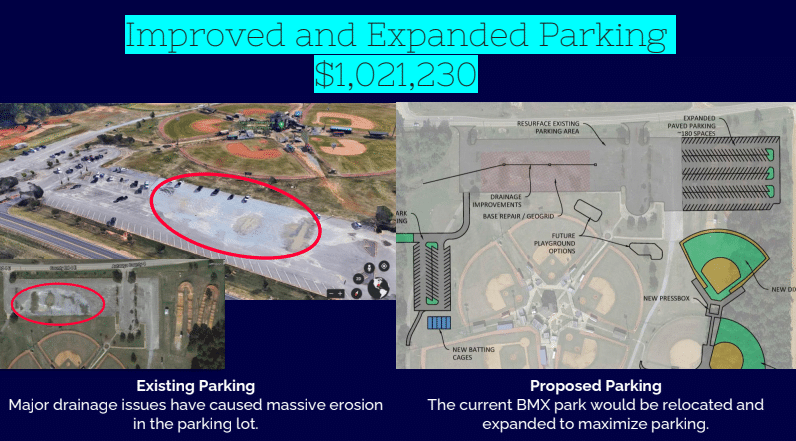 As part of the proposal, the city would add two tee-ball fields, one dixie youth field, and a concessions area and restroom. Also, additional batting cages, improving and expanding parking, and moving the BMX park to the other side of the complex are all individual projects that the city would like see done.