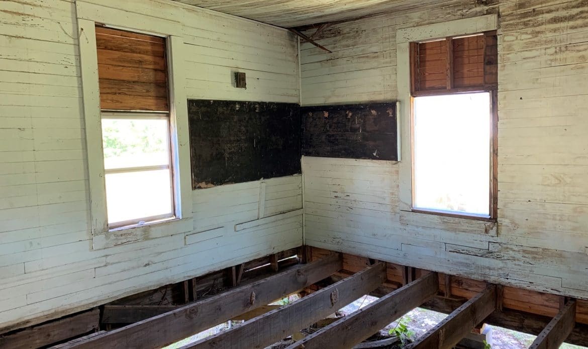 “We want to keep the historical worth of the building intact. We are going to eventually paint the inside and out the same color, replace the windows, reinstall the same seating that was already here, and put the same type of shutters and door that was originally on the school. We’re also going to install a wood-burner cast iron stove in the same spot where the old rotten one was,” Caver said.
