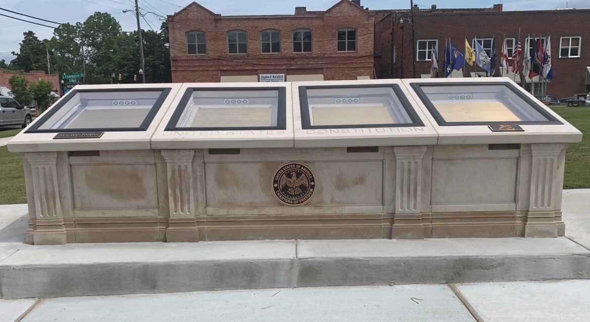 The Charters of Freedom project is pushed by Foundation Forward. The actual location of the display is on the Main Street side of the historic downtown Wetumpka Courthouse.