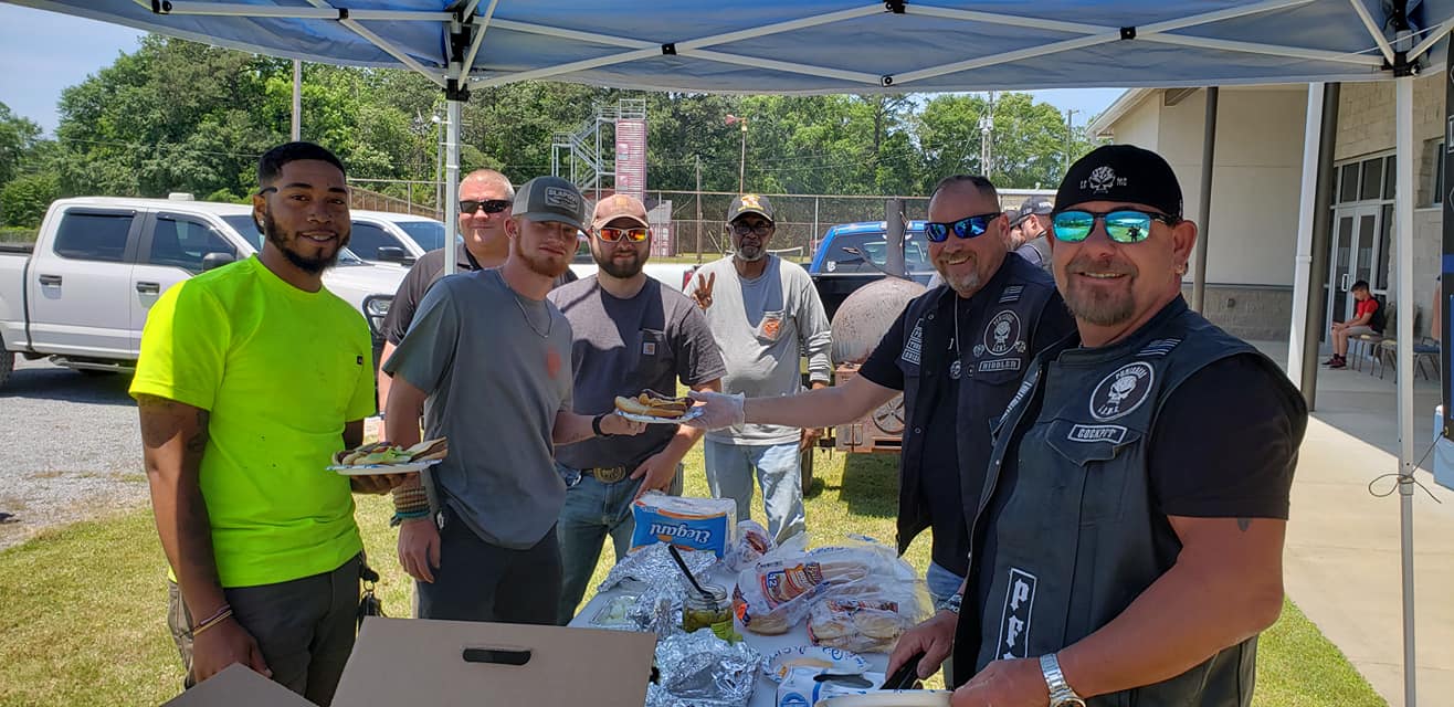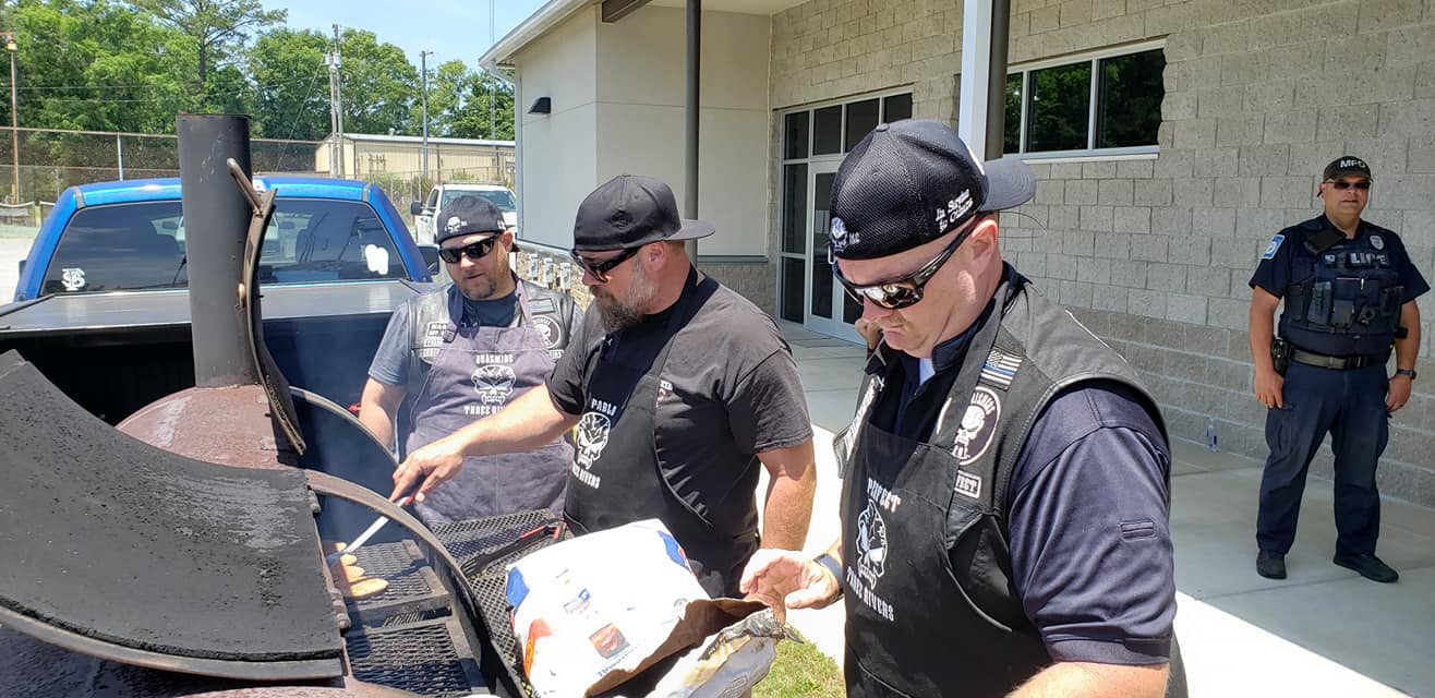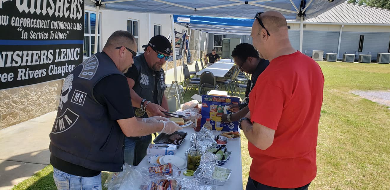 On Friday May 21, 2021, the Three Rivers Punishers Law Enforcement Motorcycle Club pulled up behind the Millbrook Police Department with a large grill, hamburgers and brats, drinks and all the fixings, which they prepared and fed employees of the Police, Fire, Street, Utility and Parks and Recreation Departments. Employees enjoyed the meal, as well as the gesture and fellowship with each other and the Punishers, who voiced the support for the work that each of the department’s employees do for the citizens of Millbrook each day.