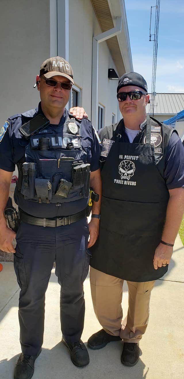 I want to express my personal thanks to Mayor Al Kelley, Council President Michael Gay and a private citizen, who made donations to ensure that we could feed all the employees today. Also, I want to extend a special Thank You to the Three Rivers Punishers LEMC, all of whom are former, retired or current law enforcement officers, for cooking and spending time with our respective departments today. The food and fellowship was great and much appreciated by our staff and the other departments.”