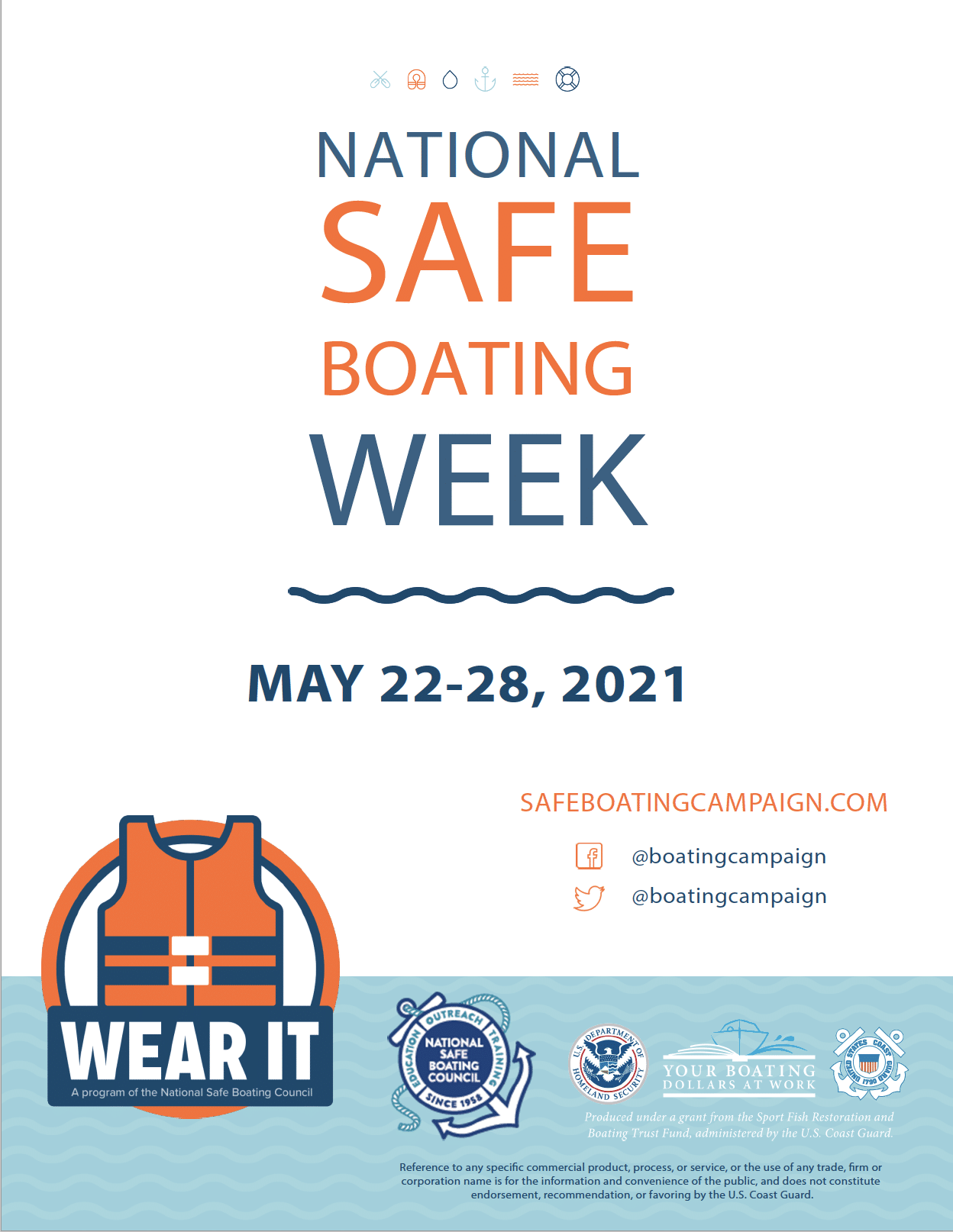 • Everyone should wear a U.S. Coast Guard-approved PFD (life vest) when under way, particularly at night. Operators are responsible for everyone on board and should ensure all passengers know where PFDs are stored, how to reach them quickly and how to use them properly.
