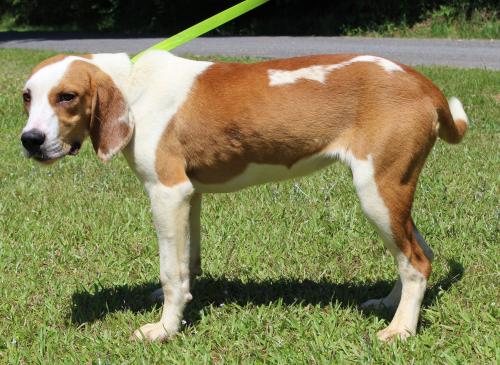 Baylee is an 1-year-old female Hound/Beagle mix who must be spayed before she is adopted. She came to PAHS as a stray and no owner never came looking for her. Baylee is mostly brown with white markings–a very pretty gal! She weighs 35 pounds so she is considered to be a medium sized young adult dog. Baylee is active, sweet, and friendly. She would be great with other dogs and children. Baylee needs a devoted new owner who will be patient with her. We don’t believe anyone has ever really worked with Baylee on leash training, etc. Sweet Baylee girl deserves a new start on life with a loving family.
