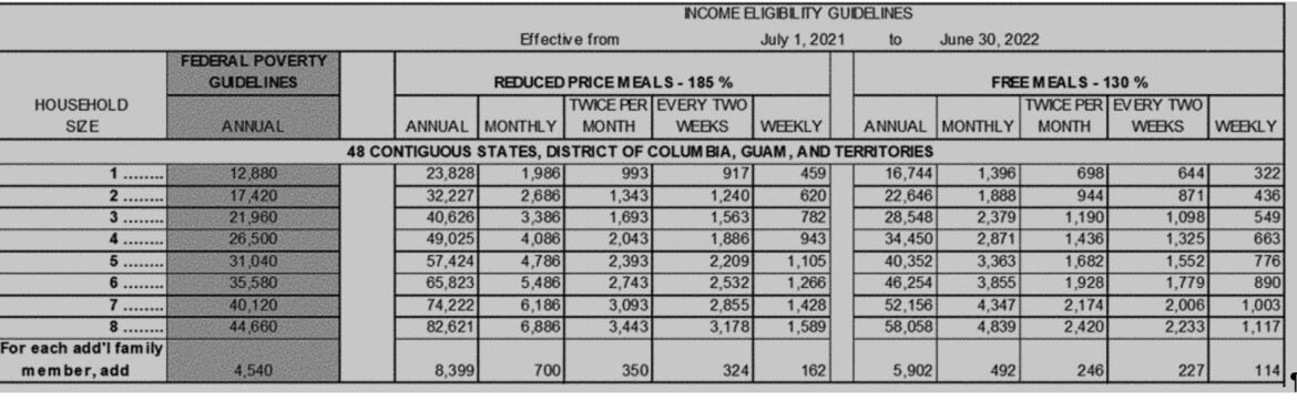 Elmore County Public Schools today announced its policy for free and reduced-price meals for children served in schools under the National School Lunch Program and/or School Breakfast Program. Local school officials have adopted the following household size and income criteria for determining eligibility: