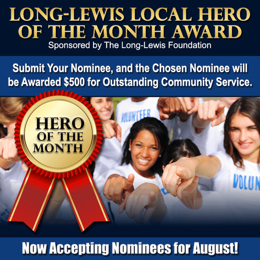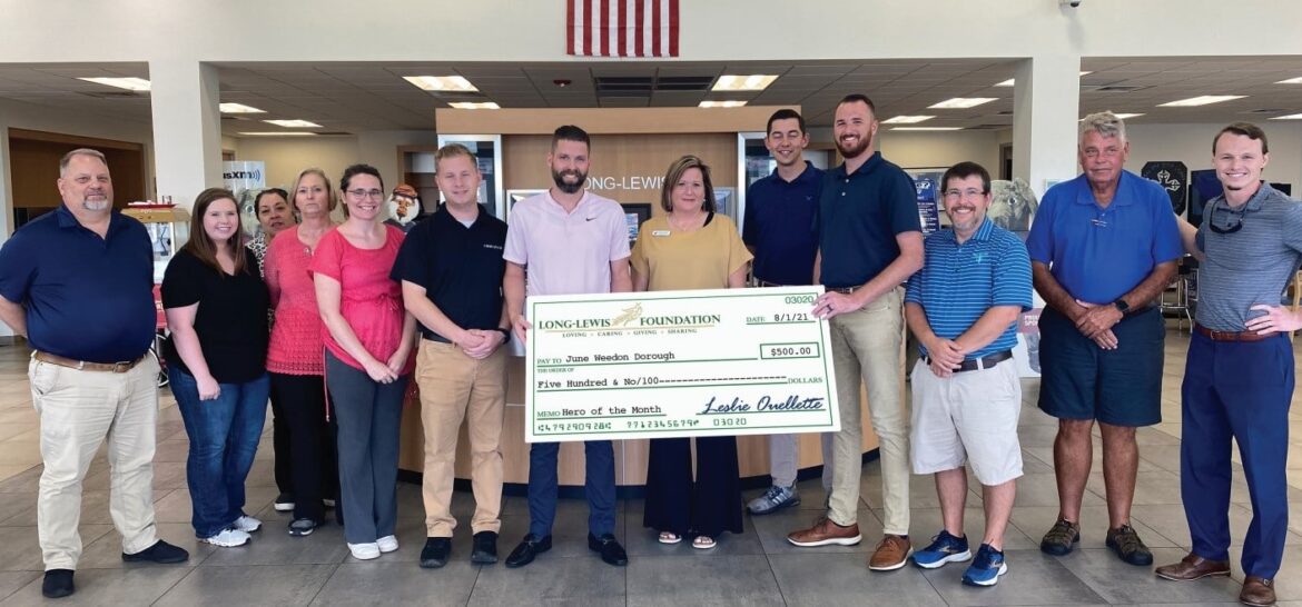 June Weedon Dorough of Prattville has been selected as a Long-Lewis Local Hero of the Month for July. June is very active with the Prattville YMCA, Field of Dreams and special needs activities.