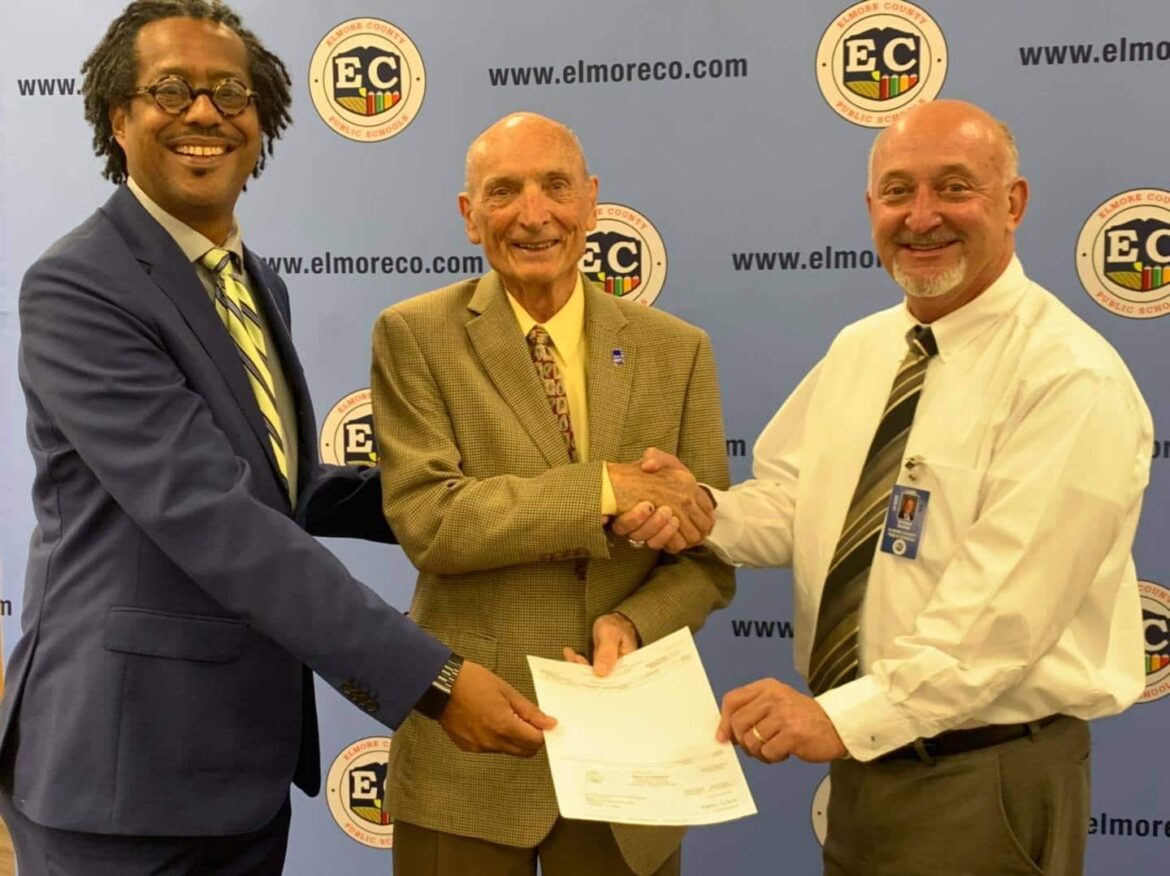 From left is Tracey Wright, STEM Programs Director; Representative Mike Holmes; and Elmore BOE Superintendent Richard Dennis