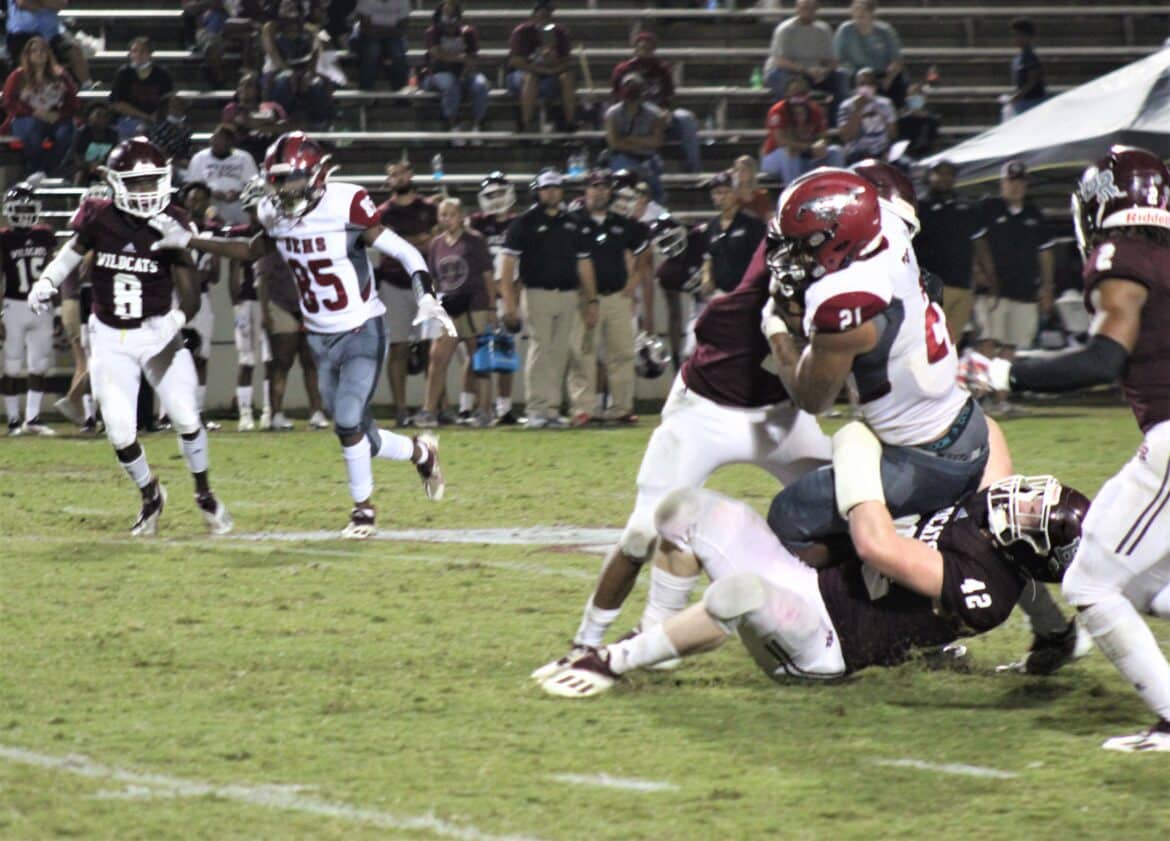 The Wildcats opened the 3rd quarter and marched down the field behind Benton’s passing, scoring from 11-yards out. The Mustangs answer was Trone. He ran the ball five straight times, once a 31-yard effort in which he broke five tackles that took almost every Wildcat defensive player to stop the running back. He later scored from 6-yards out to put the Mustangs ahead 28-14.