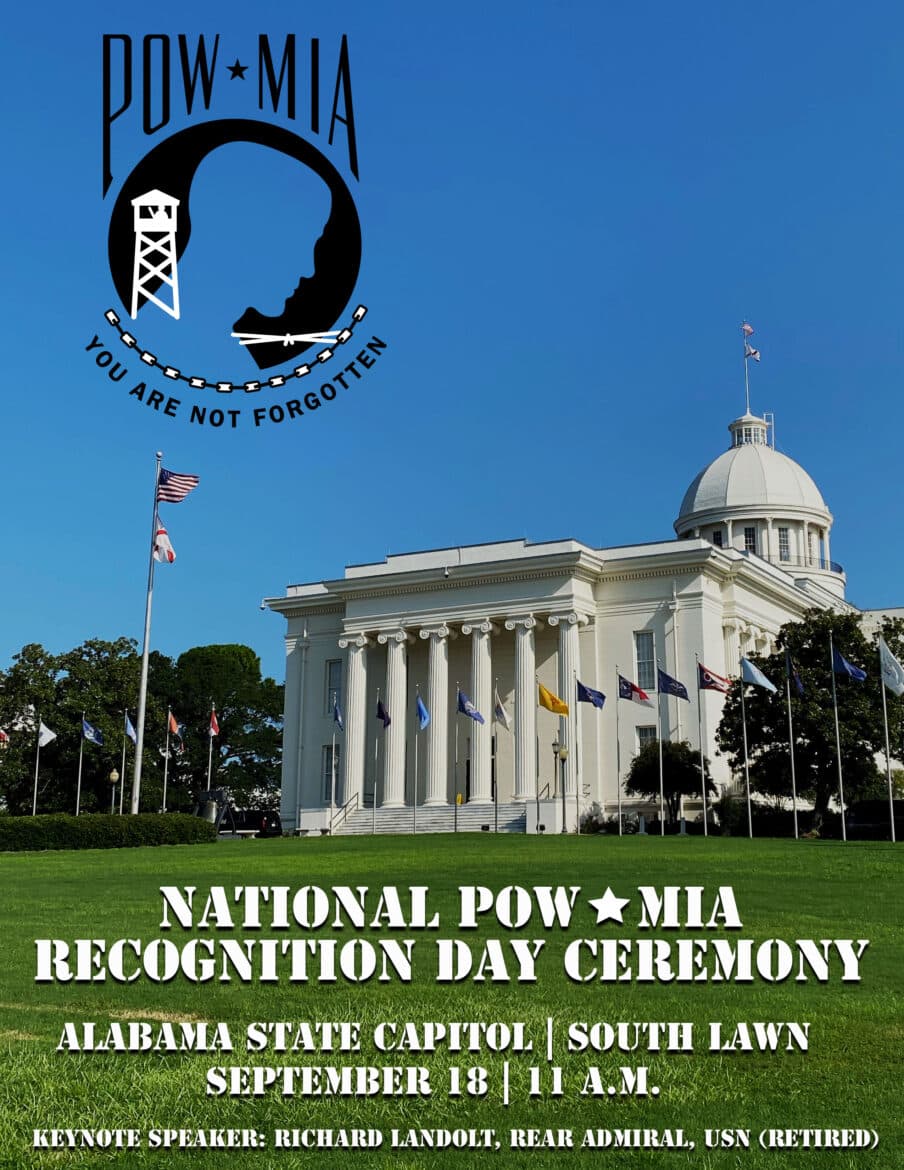 A ceremony to commemorate National POW/MIA Recognition Day will be held on the South Lawn of the Alabama State Capitol at 11 a.m. on Saturday, Sept. 18.