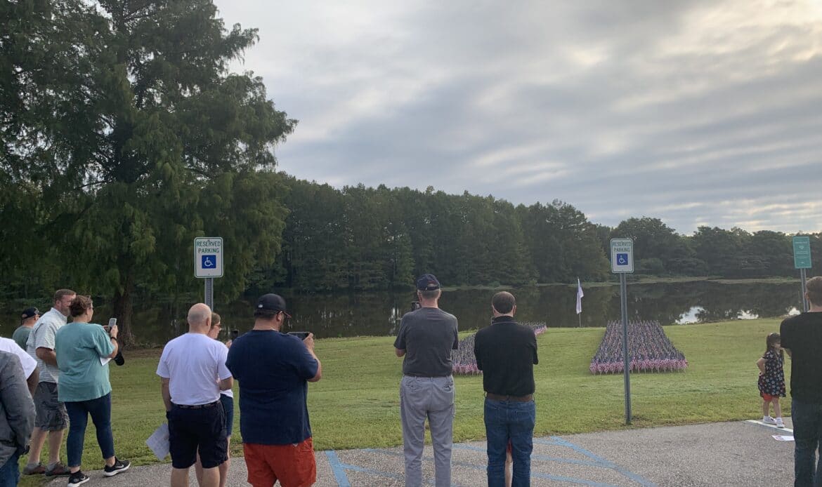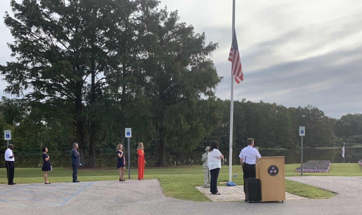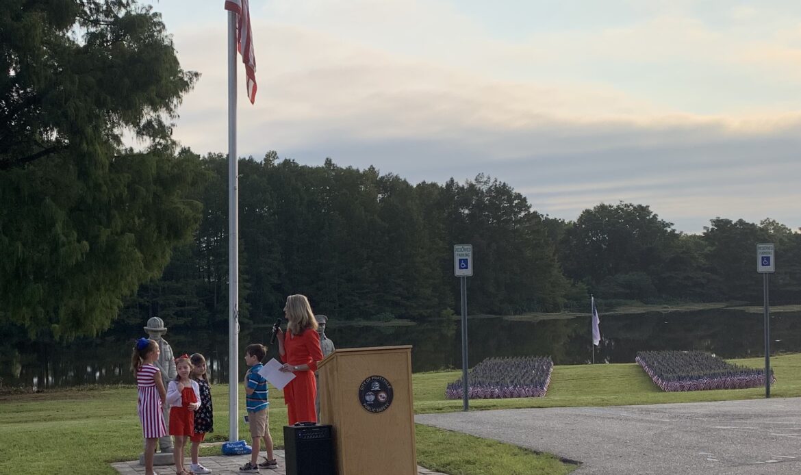 Booth, along with local area children, led the crowd in the reciting of the national anthem, while Kervin gave opening remarks. Boone explained the importance of the Flag of Honor, which stood close to the Prattville Creek in between 2,977 individual flags – each representing a life lost on Sept 11, 2001. The flag had the names of each person who died on that tragic day.