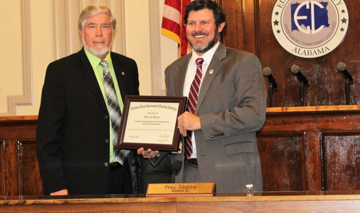 Also Monday, two Elmore County Commissioners, Henry Hines and Desirae Lewis, were recognized for completing a course of educational requirements through the Alabama Local Government Training Institute.