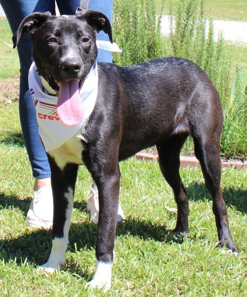 Abira is an 8-month-old female Pointer/Lab mix who has already been spayed. Abira is totally gorgeous! She has a black coat with beautiful white markings. She currently weighs 40 pounds so she is considered to be a medium sized young adult dog. Not only is Abira a beauty queen–she is a great dog! She is good with children and other dogs.