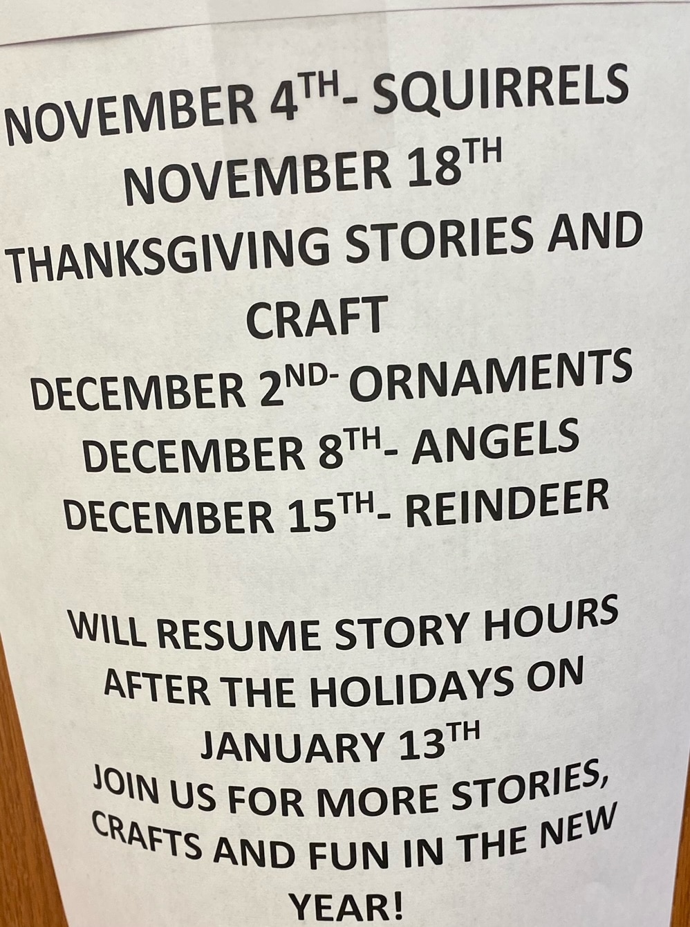 They will resume story hours after the holidays on January 13th 2022. Come to the Millbrook Library for stories, crafts, and fun in the new year!