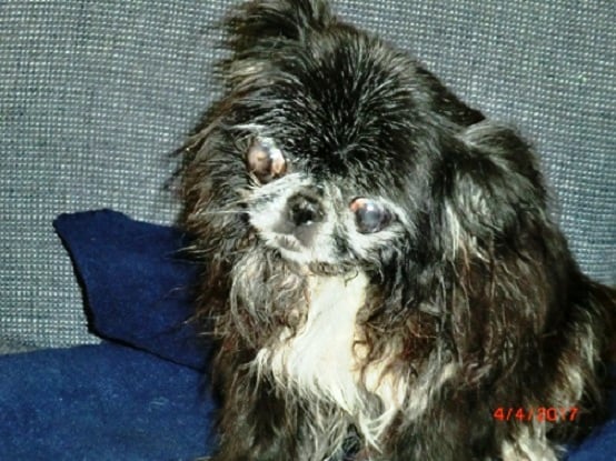 Oreo, a sad black and white Pekinese, saved from euthanasia, came to RenzNest under Nora’s care. There seemed no chance of saving her from an Autoimmune Hemolytic Anemia. No one held out hope for the little dog, but Nora opted to take drastic measures to save her. She is quick to warn everyone that she does not recommend the course of action she took without a vet’s approval. Oreo, however, had few options left, so Nora made the hard choice to stop all her meds in April 2017.