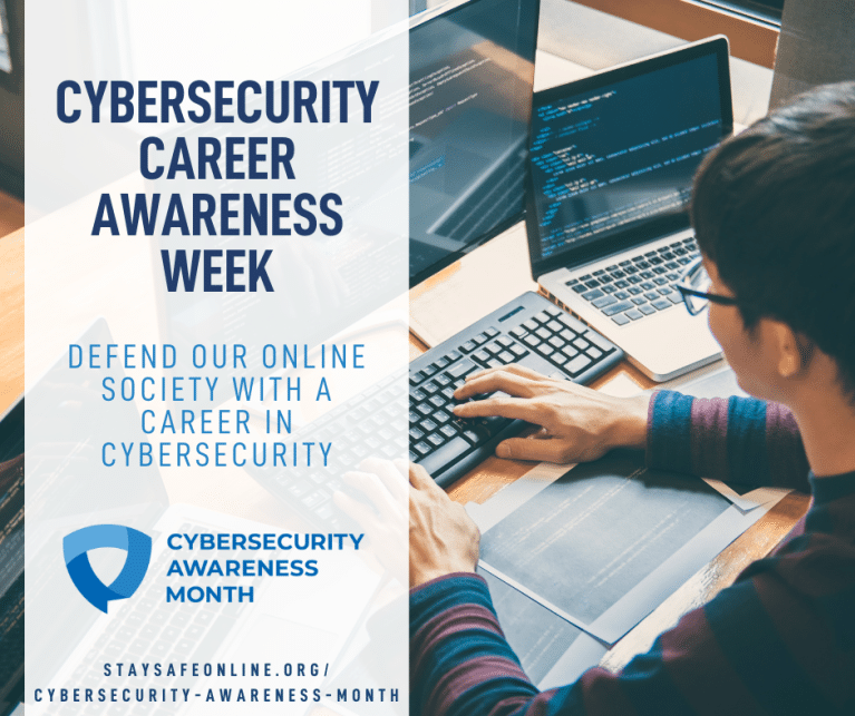 This week, Cybersecurity Awareness Month will highlight the Cybersecurity Career Awareness Week led by National Initiative for Cybersecurity Education (NICE). This is a week-long campaign that inspires and promotes the exploration of cybersecurity careers. Whether it’s students, veterans, or those seeking a career change, the dynamic field of cybersecurity is rapidly growing and has something for everyone.