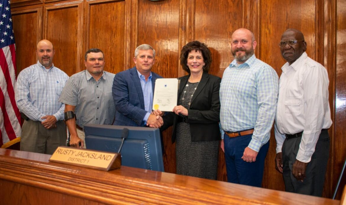 Autauga County Commissioners present Prattville Chamber President VanderWal the proclamation for Chamber of Commerce Week. Left to right: District 2 Commissioner John L. Thrailkill, District 3 Commissioner Bill Tatum, Chairman Jay Thompson, Prattville Chamber President VanderWal, District 1 Commissioner Rusty Jacksland and District 5 Commissioner Larry Stoudemire.