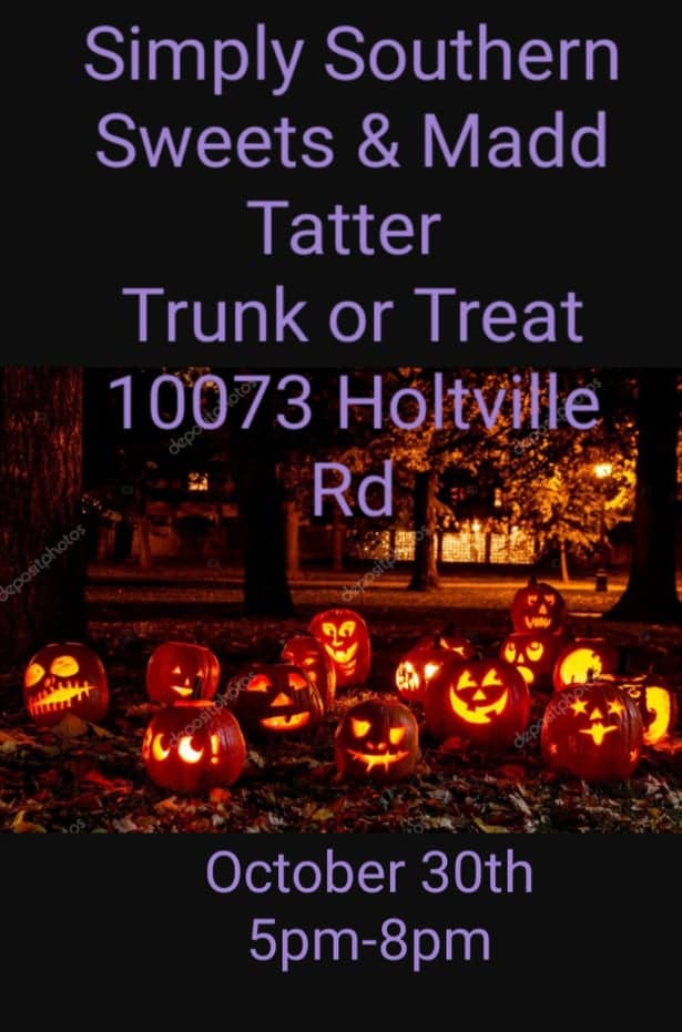 OCTOBER 30 – FROM 5 TO 8 P.M. – MADD TATTER SIMPLY SOUTHERN SWEETS TRUNKOR TREAT