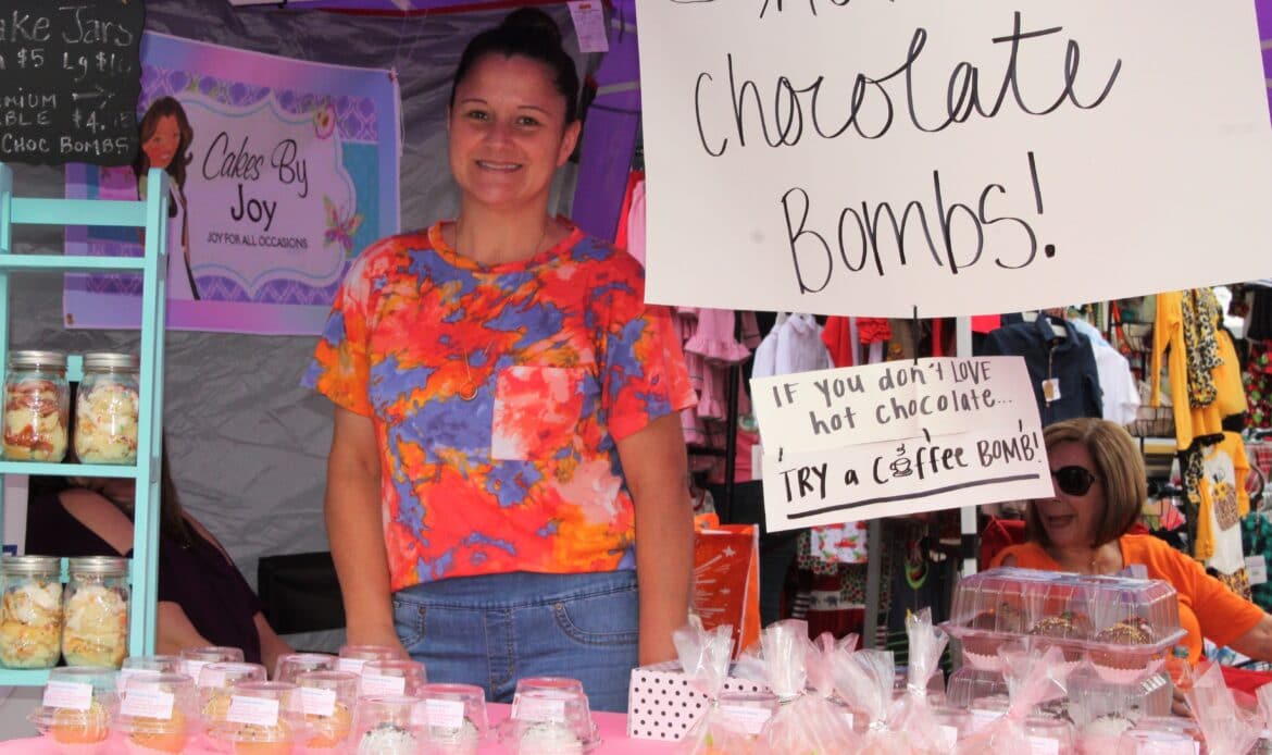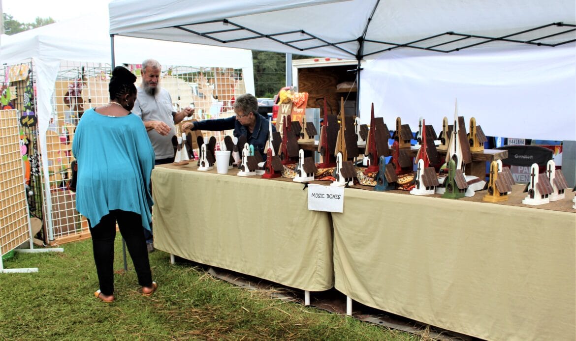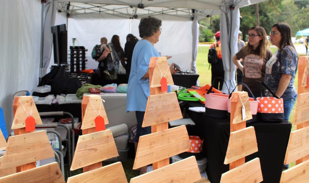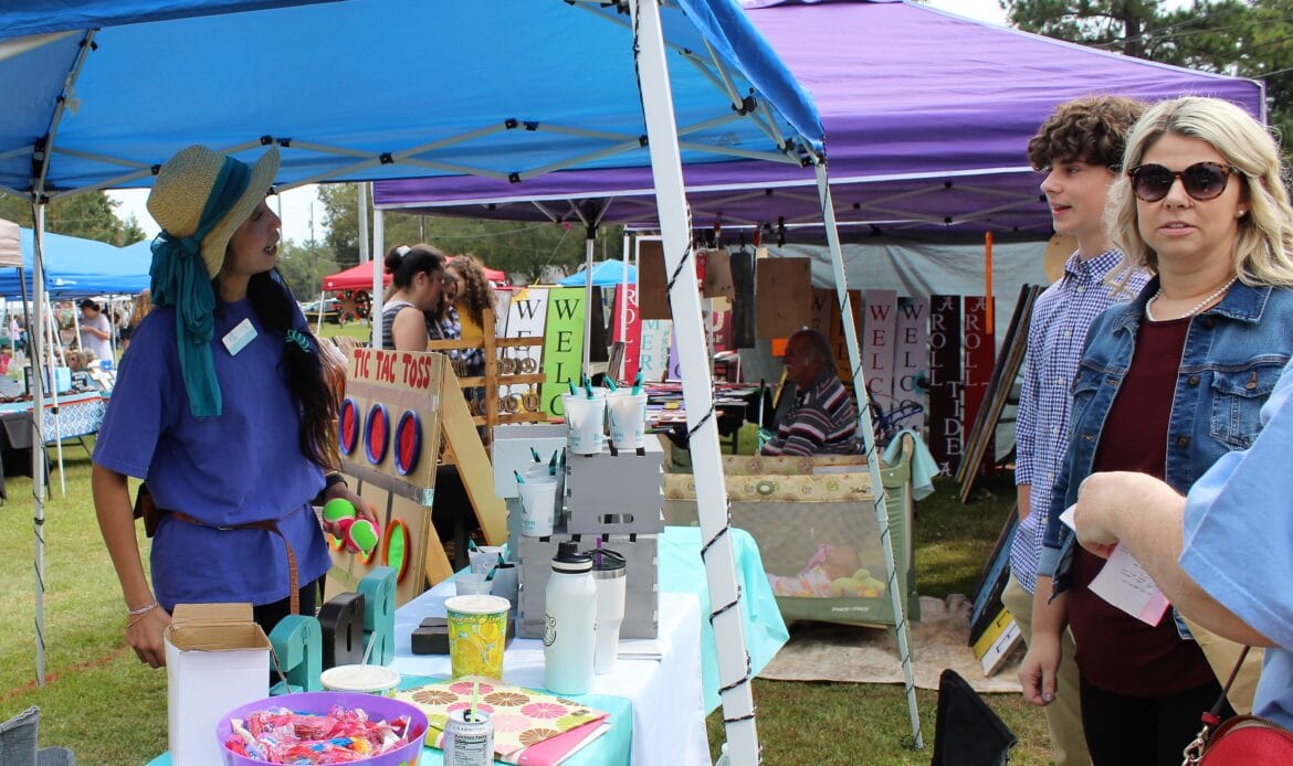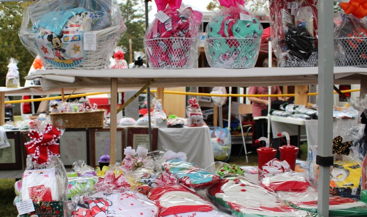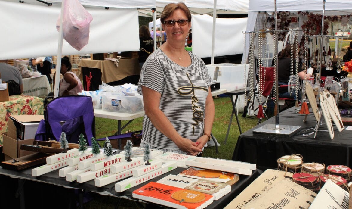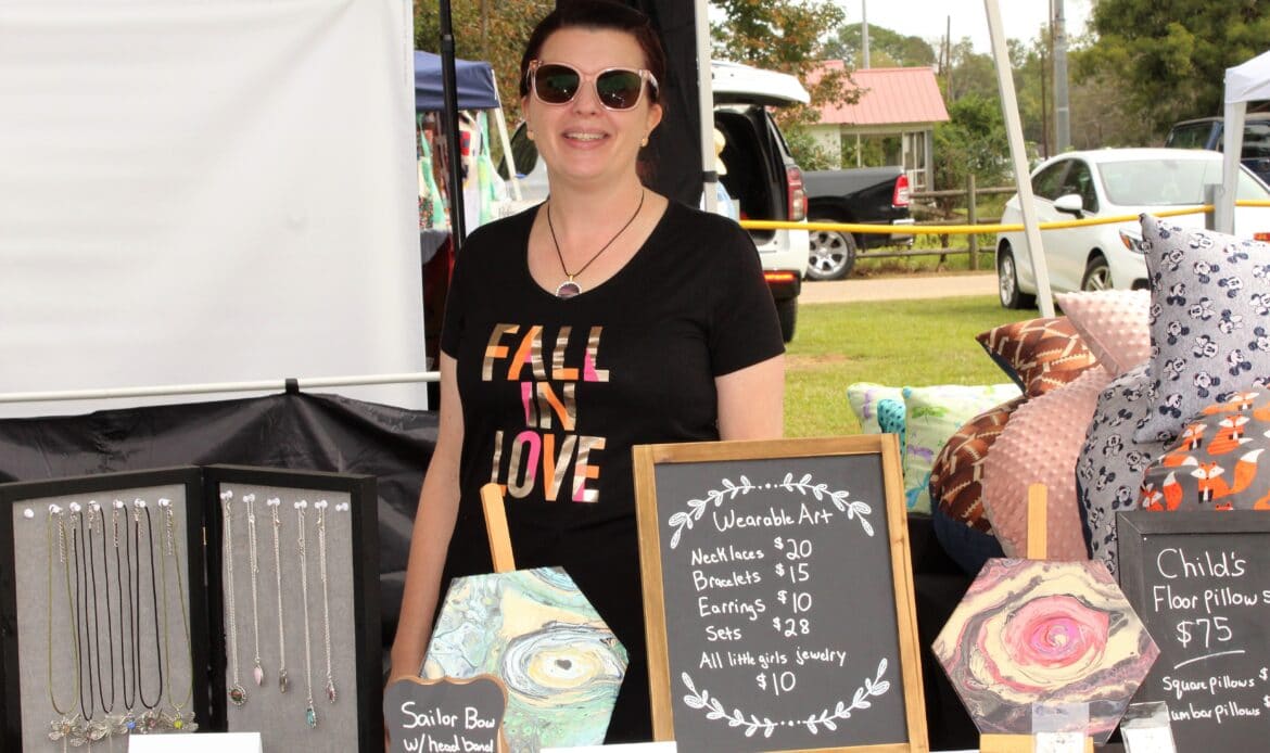 A total of 104 vendors sold everything from honey, jewelry, makeup, woodworks, candles, art and pottery to wreaths, children’s toys, soaps and lotions. There was a variety of food truck vendors selling delicious dishes ranging from stir fry and gyros to onion petals and freshly-squeezed lemonade. There were inflatables for children and families and a playground.