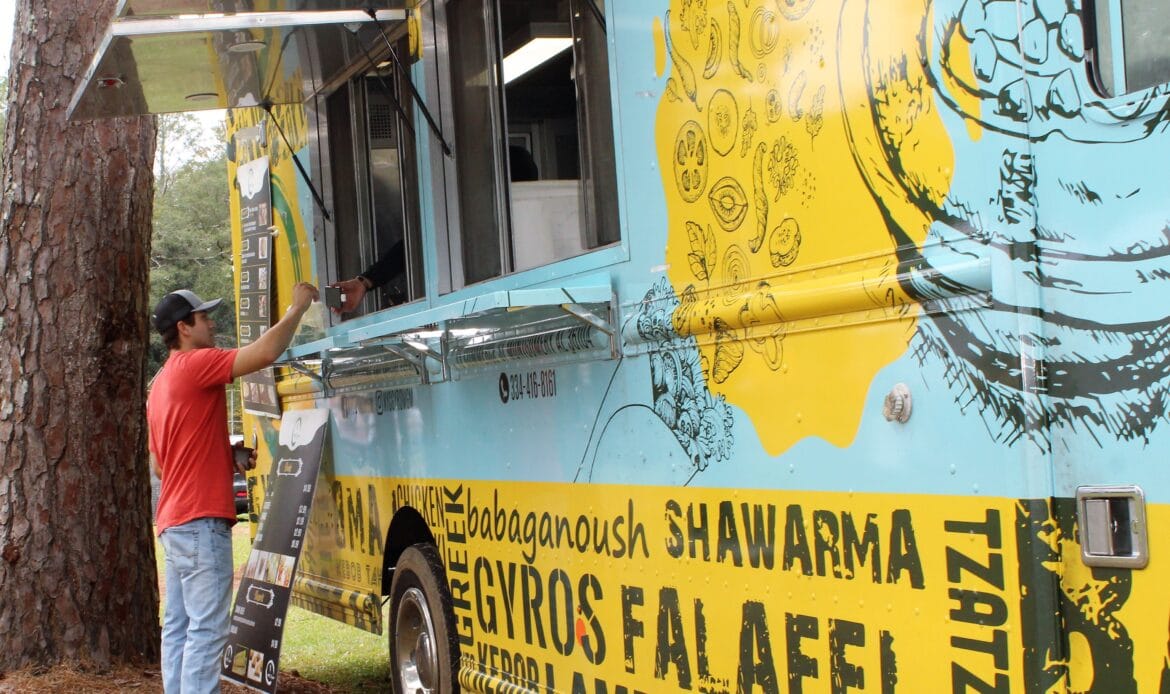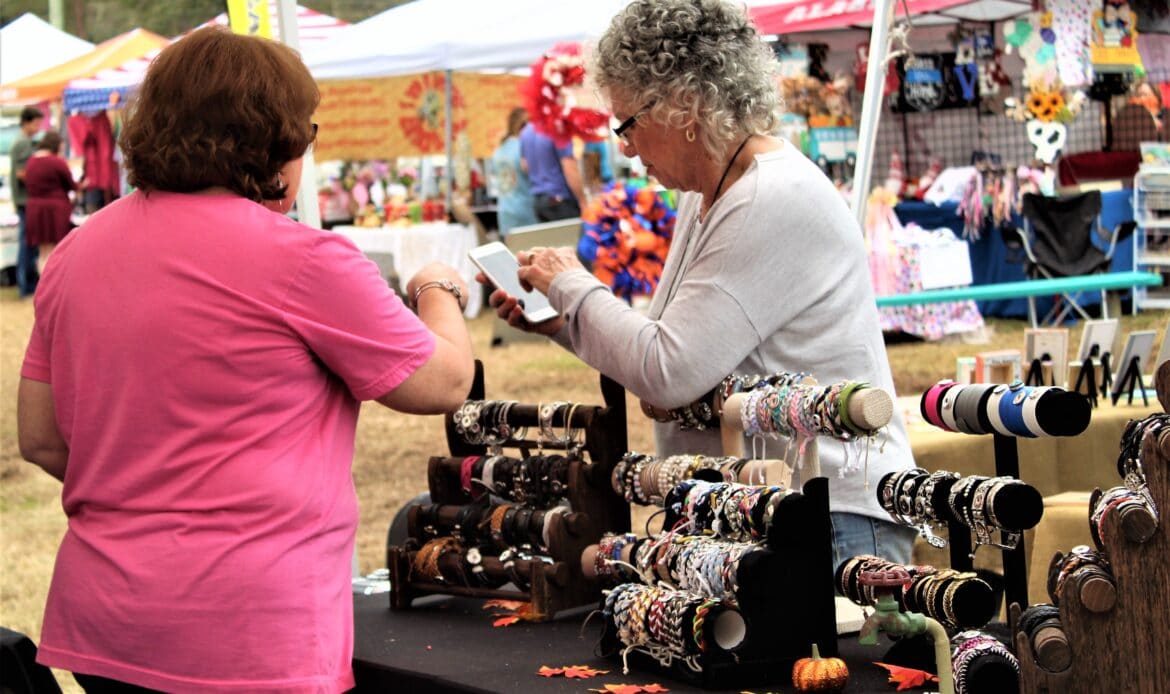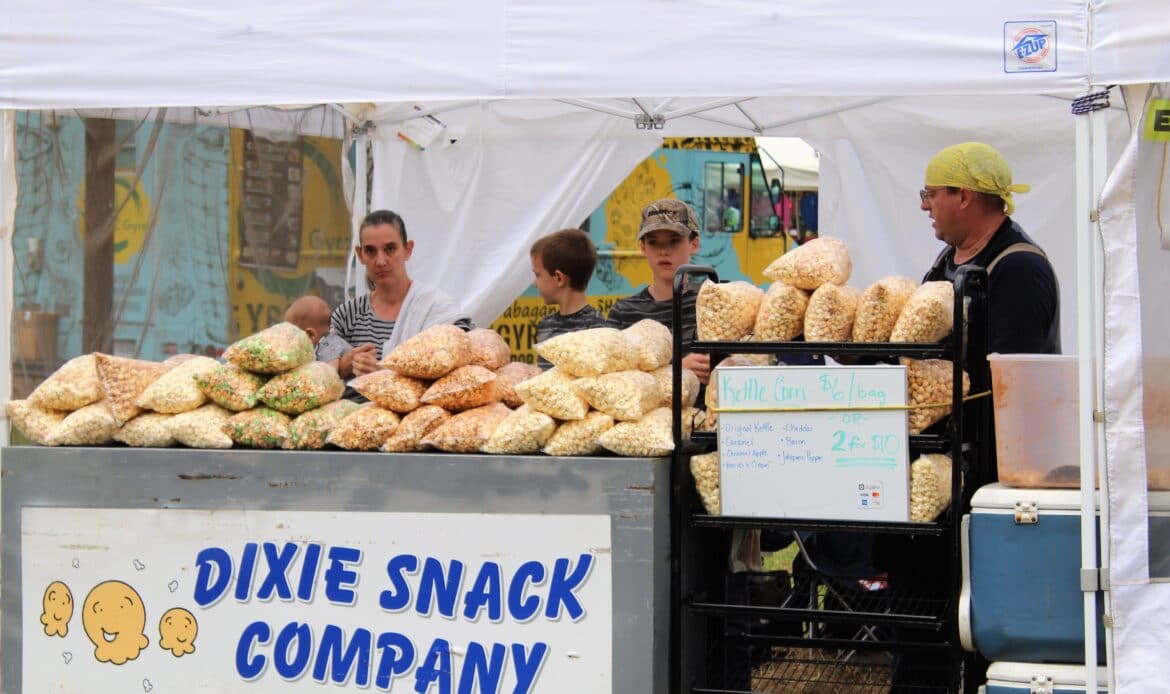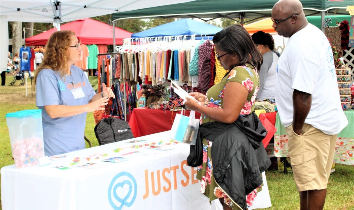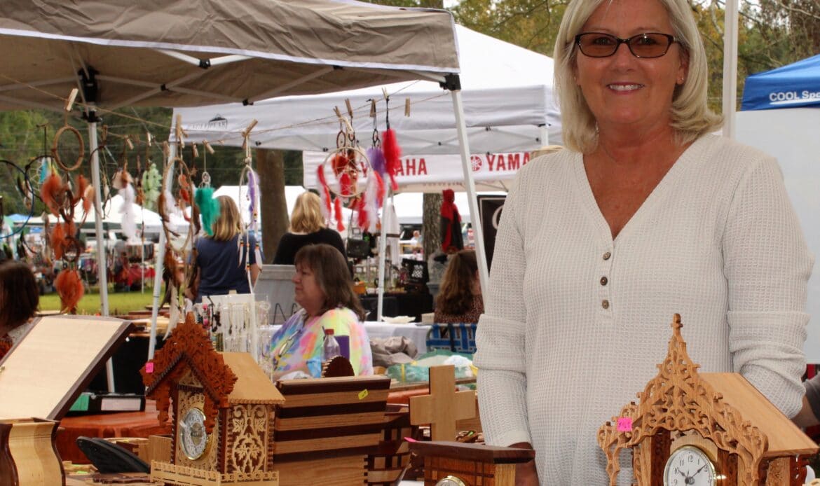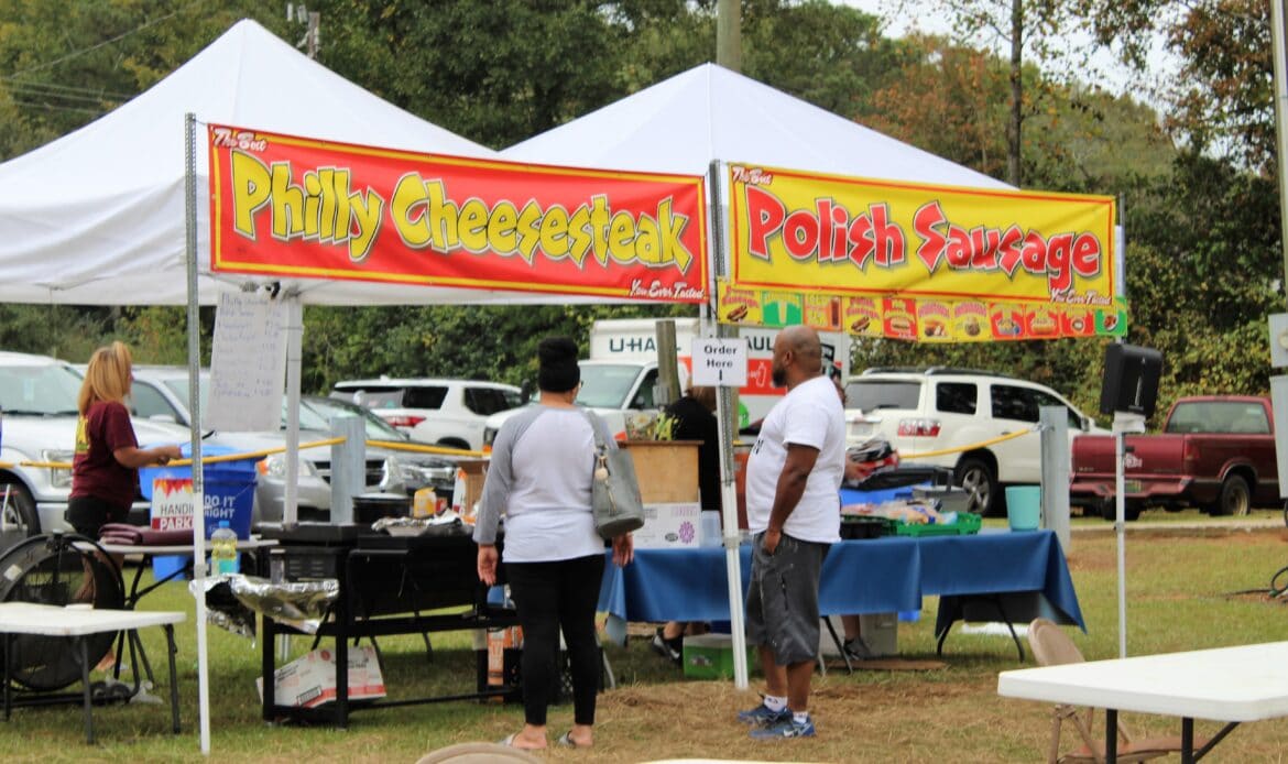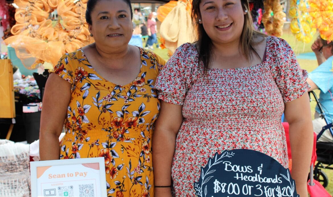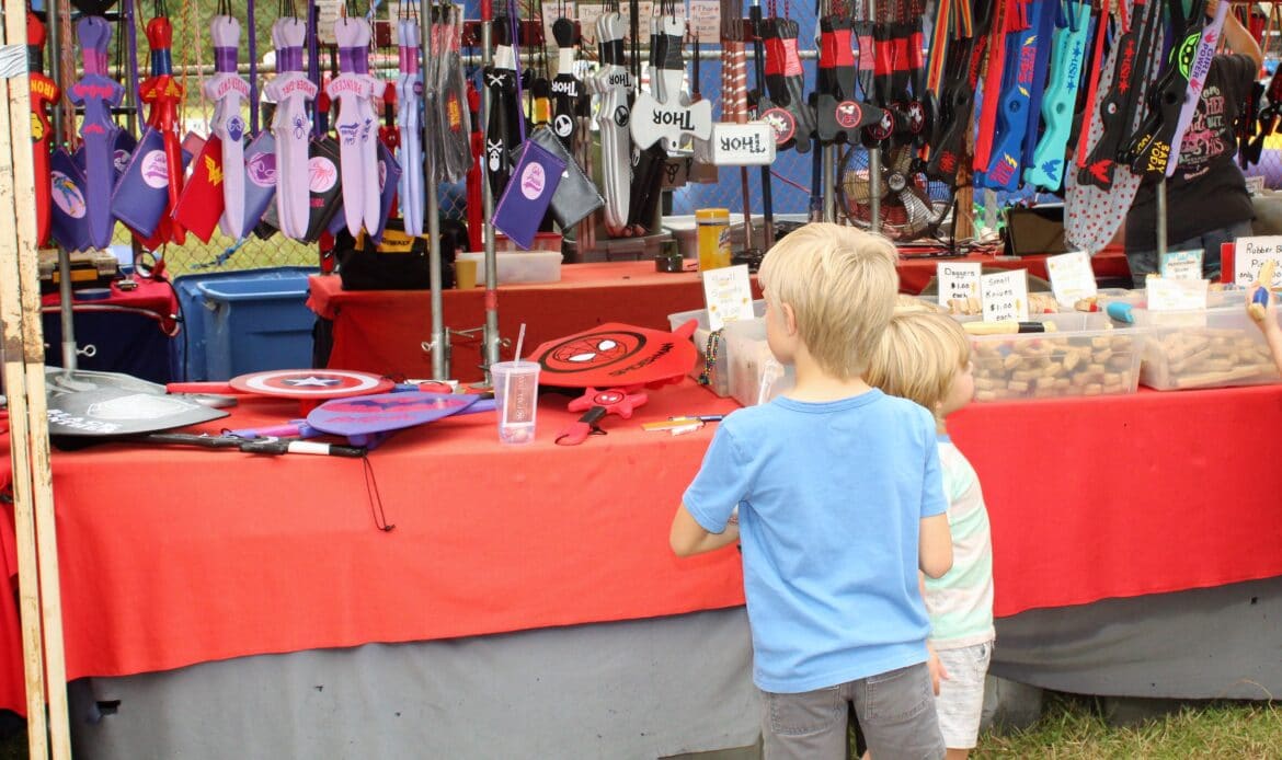 A total of 104 vendors sold everything from honey, jewelry, makeup, woodworks, candles, art and pottery to wreaths, children’s toys, soaps and lotions. There was a variety of food truck vendors selling delicious dishes ranging from stir fry and gyros to onion petals and freshly-squeezed lemonade. There were inflatables for children and families and a playground.