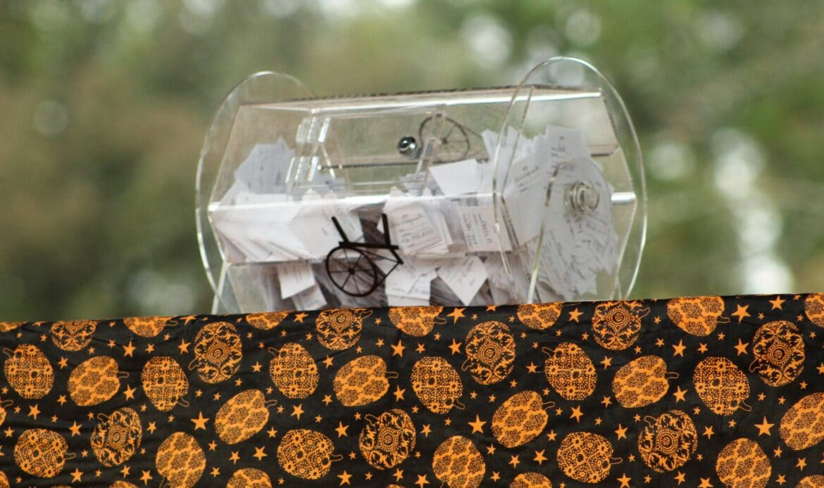The organization sold 3,000 raffle tickets at $1 each and the prize was a fall-inspired quilt pieced and quilted by Spinners members that was truly a work of art. They also raffled off other items such as gift baskets and gave away a variety of door prizes.