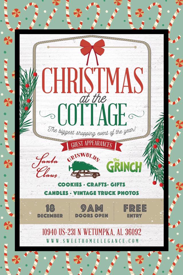 Join Hensley Creek Candles for our 1st annual Christmas at The Cottage event. We will have cookies & pictures with Santa & the Grinch. Guest appearance by the Wetumpka famous Griswolds.