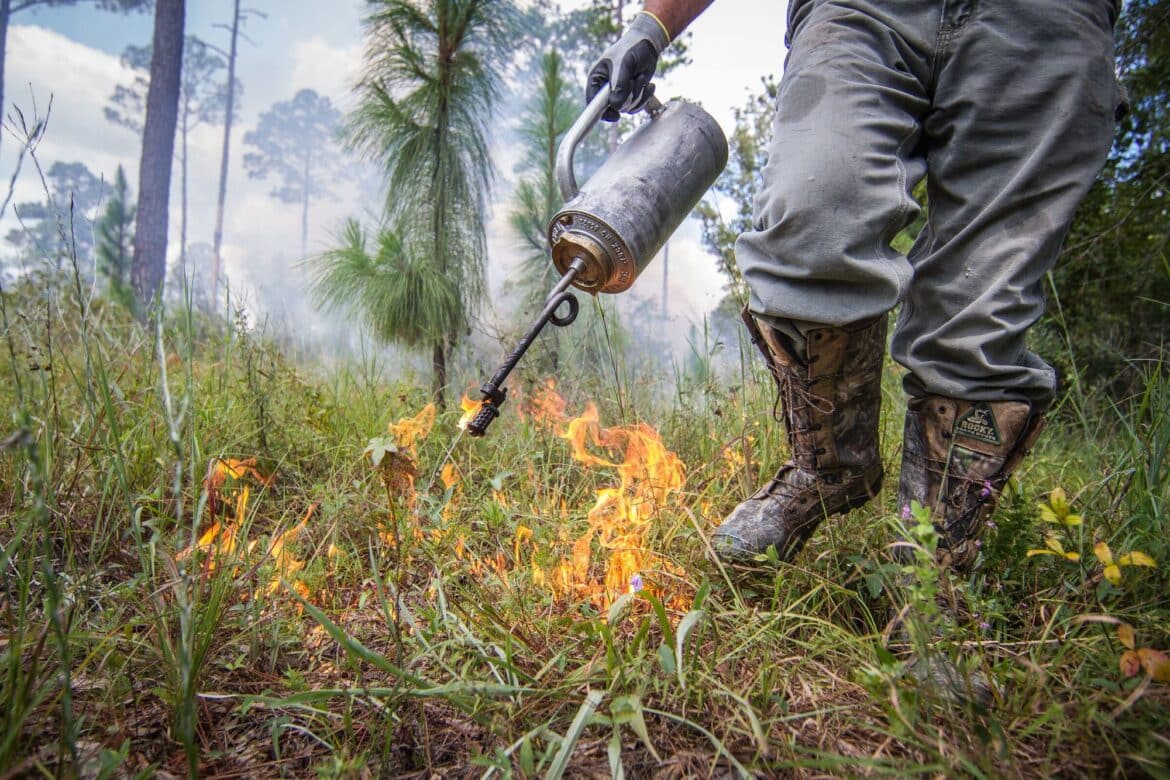 Prescribed fire is a valuable tool in maintaining longleaf pine forest and other wildlife habitat. When properly used controlled burning reduces the risk of wildfire by eliminating excess fuel on the ground. Prescribed fire also stimulates new plant growth that serves as food for several species including wild turkey, white-tailed deer, bobwhite quail, fox squirrel, woodpeckers and bluebirds.