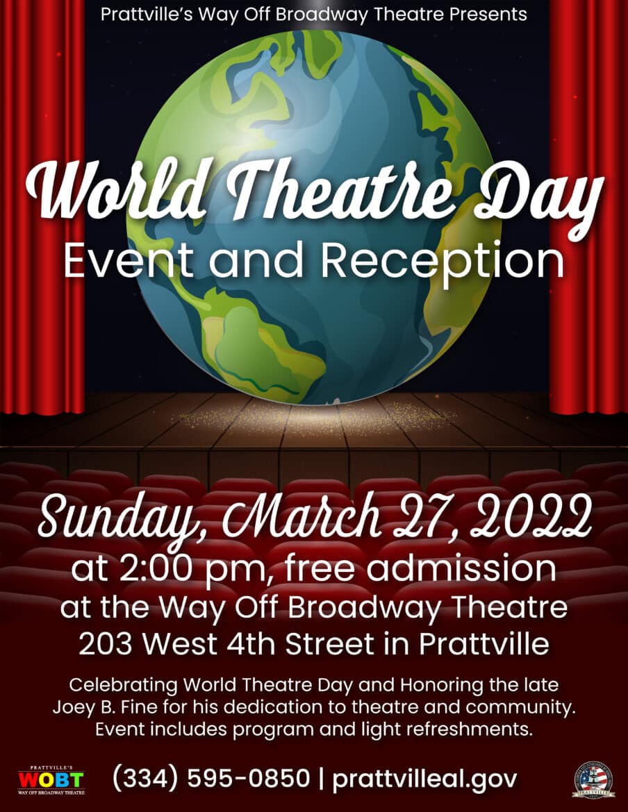 Prattville’s Way Off Broadway Theatre will Celebrate World Theatre Day on Sunday, March 27, and will honor the late Joey B. Fine. Joey was a big part of the Way Off Broadway Theatre and the entire theatre community of the River Region.