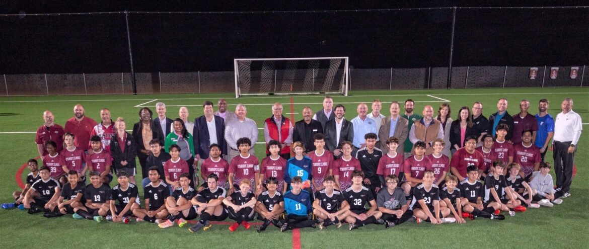 During the break between the junior varsity boys game and the varsity boys game, members of the five partners working to make 17 Springs a reality joined members of the Stanhope Elmore High School Soccer program for a photo opportunity.