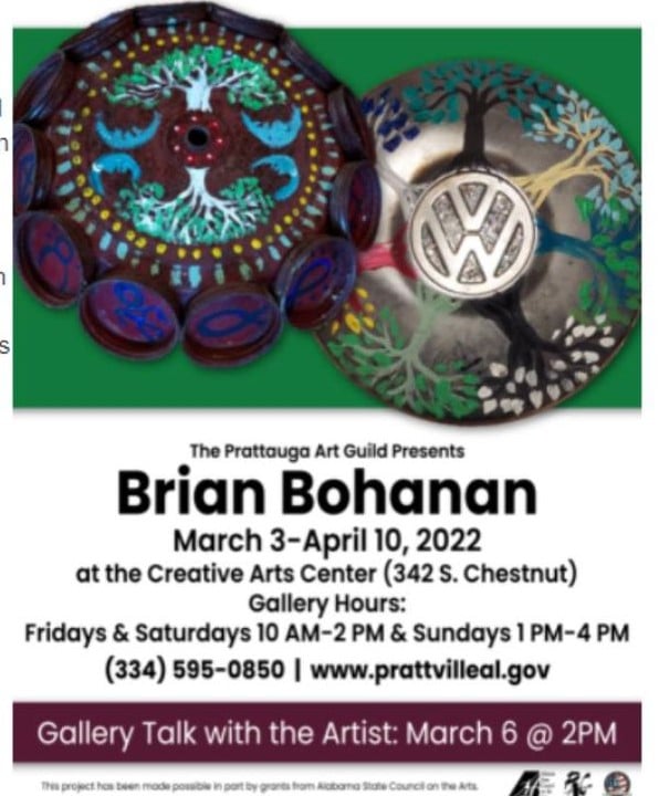 Prattville – The Prattauga Art Guild is excited to host an exhibit featuring the artwork of Alabama Folk Artist Brian Bohanan now through April 10, 2022 at the Prattville Creative rts Center and Gallery.