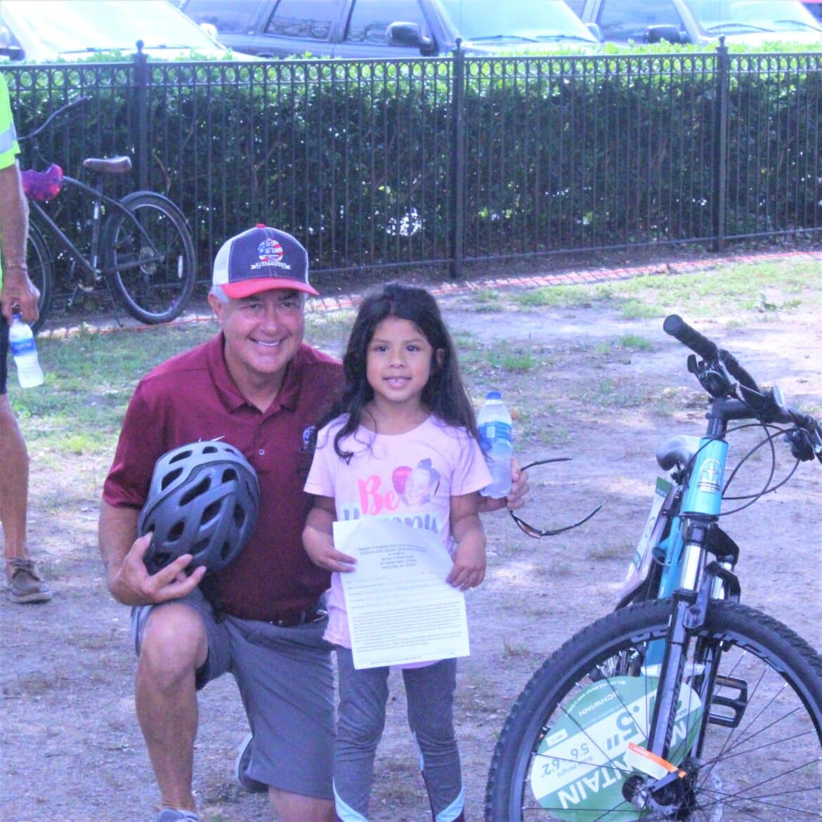 Gillespie, after riding into the park with his friends, gave away two bicycles to a couple of lucky winners and welcomed the big crowd to the city’s event. The City wants to Thank Pepsi for donating the bicycles that were given away to lucky winners.