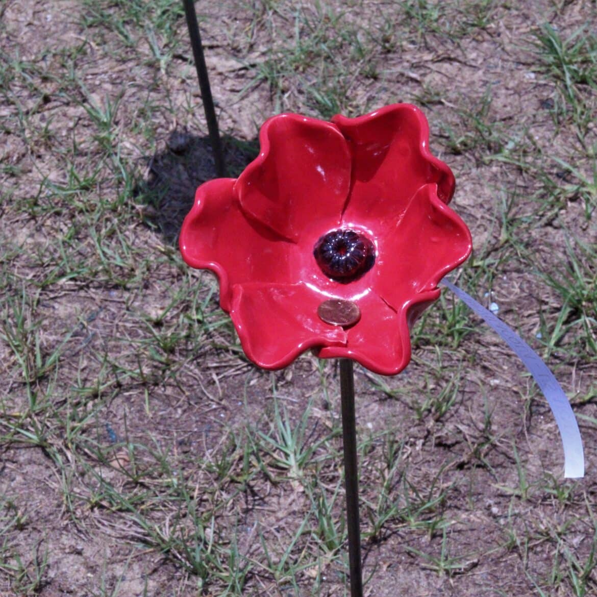 “I had this spot in mind because it reminded me of a war-torn area, very historical looking,” she said of the area near the dam. “We started creating prototypes of poppies and by that time the pandemic was kicking in. We were trying to figure out if there was hardware involved. We have done so many types of prototypes. Finally, we came up with a design that was just a post and a poppy and it was all ceramic so it could be left outside and not degrade.”
