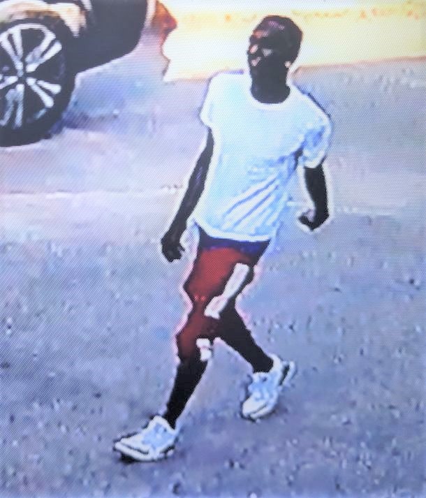 On April 23, 2022, Prattville Police responded to Launch Trampoline (Prattville) in reference to a B&E of a pickup truck. The suspect was described as a black male subject wearing a white T-shirt, red shorts, and white shoes. Photos released by investigators capture the subject going into the toolbox located on the back of a pickup truck and taking a bag full of tools.