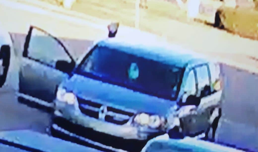 Another unknown subject driving a gray van (Dodge) with damage on the left rear side of the vehicle was seen picking the suspect up and leaving the area. Attached is a picture of the suspect and the van.