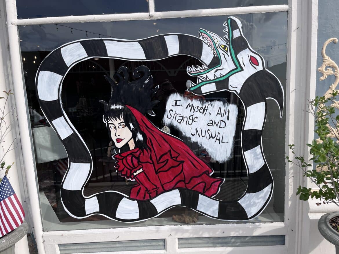 The shops in Downtown Wetumpka were themed for the 2nd Annual Tim Burton Birthday Celebration in recognition of Burtonโs most famous Alabama film, Big Fish. Events took place on August 25 and August 26, and if you were walking down Company Street you would have been delighted to see visions of Batman and Robin, Sweeny Todd, Alice, Edward Scissorhands, and more.