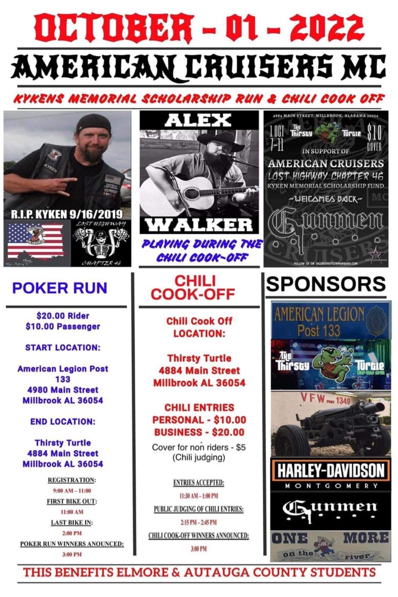 The American Cruisers Lost Highway Chapter 46 MC is hosting the Kyken’s Memorial Scholarship Run and Chili Cook Off Oct. 1.