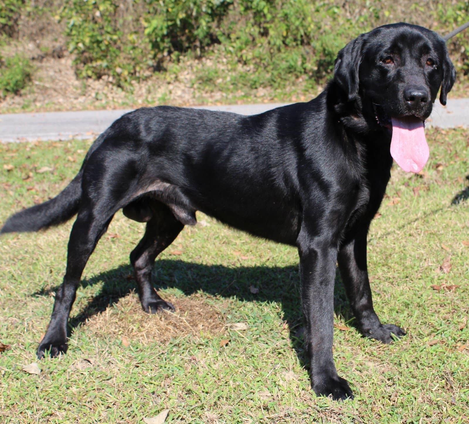 Jack is a 2-year-old male Black Lab who must be neutered before he is adopted. He was brought in as a stray from out in the county; and no one reclaimed him. Jack is as handsome as any dog we have ever seen. He is solid black and his coat is so shiny! Jack weighs 58 pounds so he is a big guy. This big sweetheart LOVES to play fetch; and he never gets tired of it. Jack is an athlete–he loves to run–so he will need a nice big, fenced yard where he can safely play! He would be good with other dogs and older children. Jack is a perfect example of why Labs are such a popular choice for a family dog. He is fun to be around, gets along well with others, and he is both smart and eager to please! Jack already knows the commands–sit, stay, and no. Simply put–Jack is the total package and a totally awesome boy!