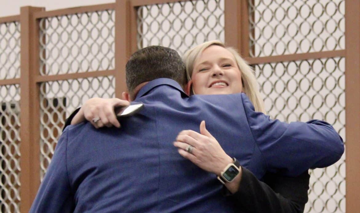 โIt is nothing short of Godโs plan that we are all here today,โ she said. โSometimes the path to get us where we are supposed to be is not an easy one. But it is Godโs plan and it is His path. When the days get hard, I want you to look back in the Bible at the story of Esther. Think about how God called her to be a queen and the things she had to go through. It wasnโt always easy. I am honored and privileged to call you sheriff. But most importantly I am honored to call you friend.โ