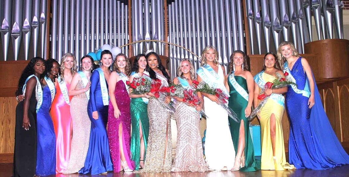 Top Photo: Left-right, Niyah Lucas, Sacoria Garvin, PresLee Pittman, Miss Philanthropic Olivia Bailey, Addison Jacobs, Haley Sutherland, Grace Wiggins, Miss Huntingdon and Miss Congeniality Ariel Dixon, First Runner-up Olivia Elmore, Second Runner-up Kennedy Chambers, Shannon McCarty, Fan Favorite Alexakai Cardoza, and Blair Wyrosdick.