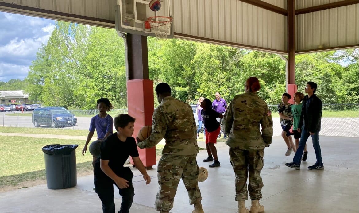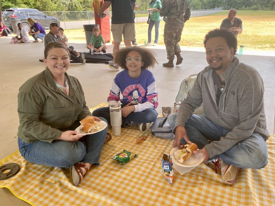 On Friday Millbrook Middle School hosted their inaugural Purple Star Picnic event for their military students and their families. Over 60 guests were in attendance. Millbrook Middle was recently recognized as one of the Purple Star schools. The picnic included sandwiches, chips, cookies, and drinks. Special guests included Superintendent Richard Dennis, and School liaison program managers Katheryn Ganster and Robert Richert; Rachel Surles, Community Coordinator from the Military Child Education Coalition; Christine Flynn, Military and Family Life Counselor; Ayena Jackson, Middle School Director; and Shay Jackson, Senior Coordinator of Secondary Curriculum Military Liaison for ECPS. Families had lunch, played games on the law with their children and spent time visiting.