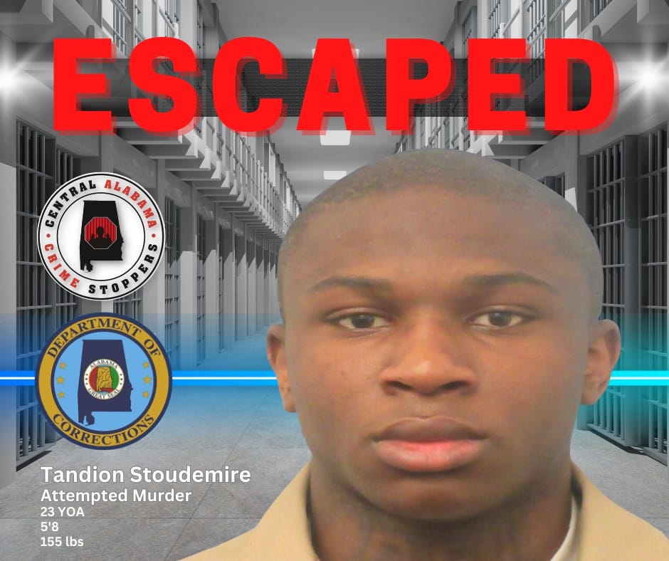 Tandion Stoudemire was serving a 23-year prison sentence for Attempted Murder at the Stanton Correctional Facility located at 2690 Marion Spillway Road in Elmore, Alabama. On May 25, 2023, at approximately 2:00 a.m., Stoudemire is believed to have escaped.