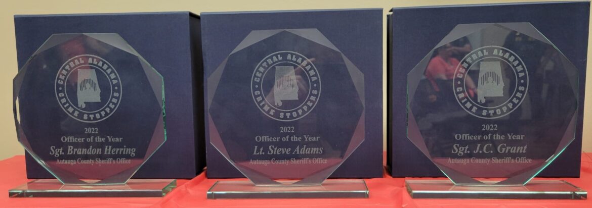 A few months back we shared the story of three of our deputies, who without hesitation, saved the life of an individual and were given the Life Saving Award for their heroic actions. These same deputies were the recipients of the Central Alabama Crime Stoppers Officers of the Year Award! We are so proud of these guys and the actions they took on that day. Congratulations Lt. Adams, Lt. Grant and Sgt. Herring on this well-deserved award!