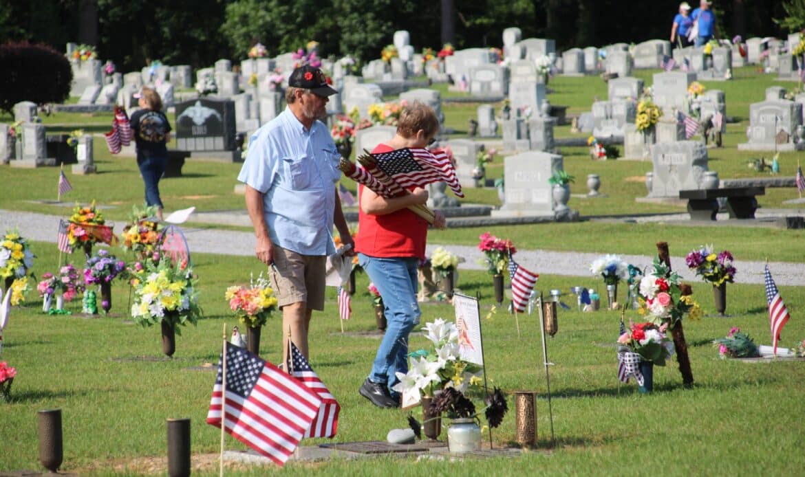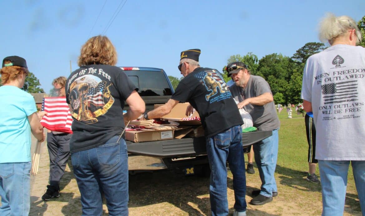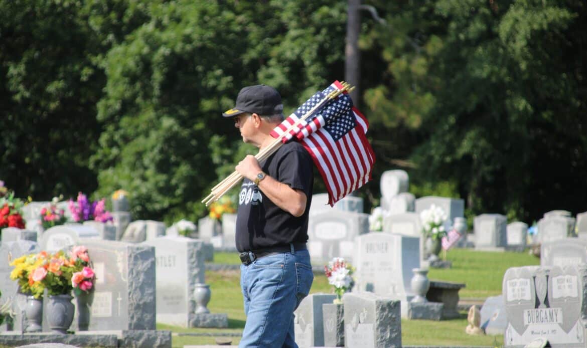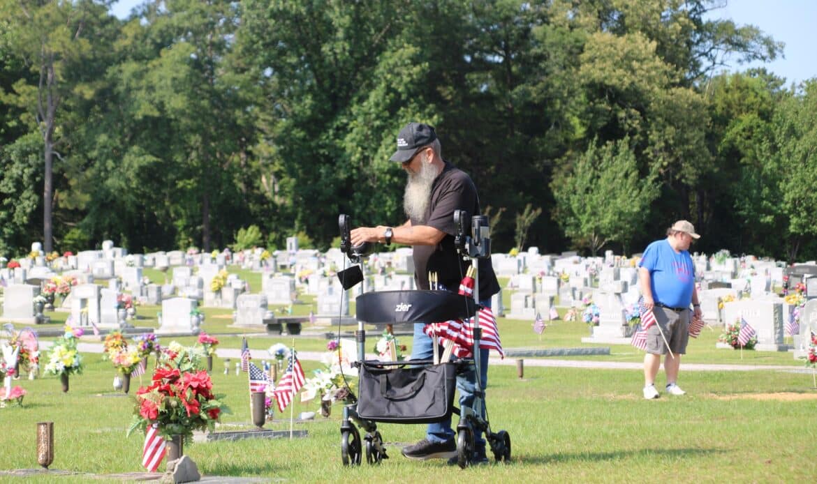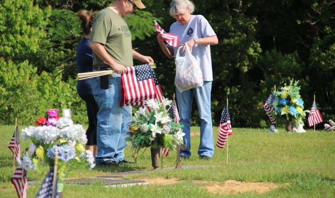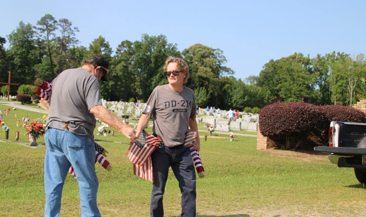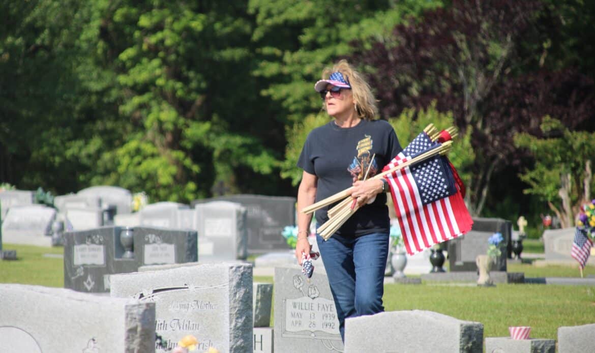 It is something that occurs every year, and this year a big crowd arrived to help in the task, placing the flags on graves at Brookside Memorial Cemetery.